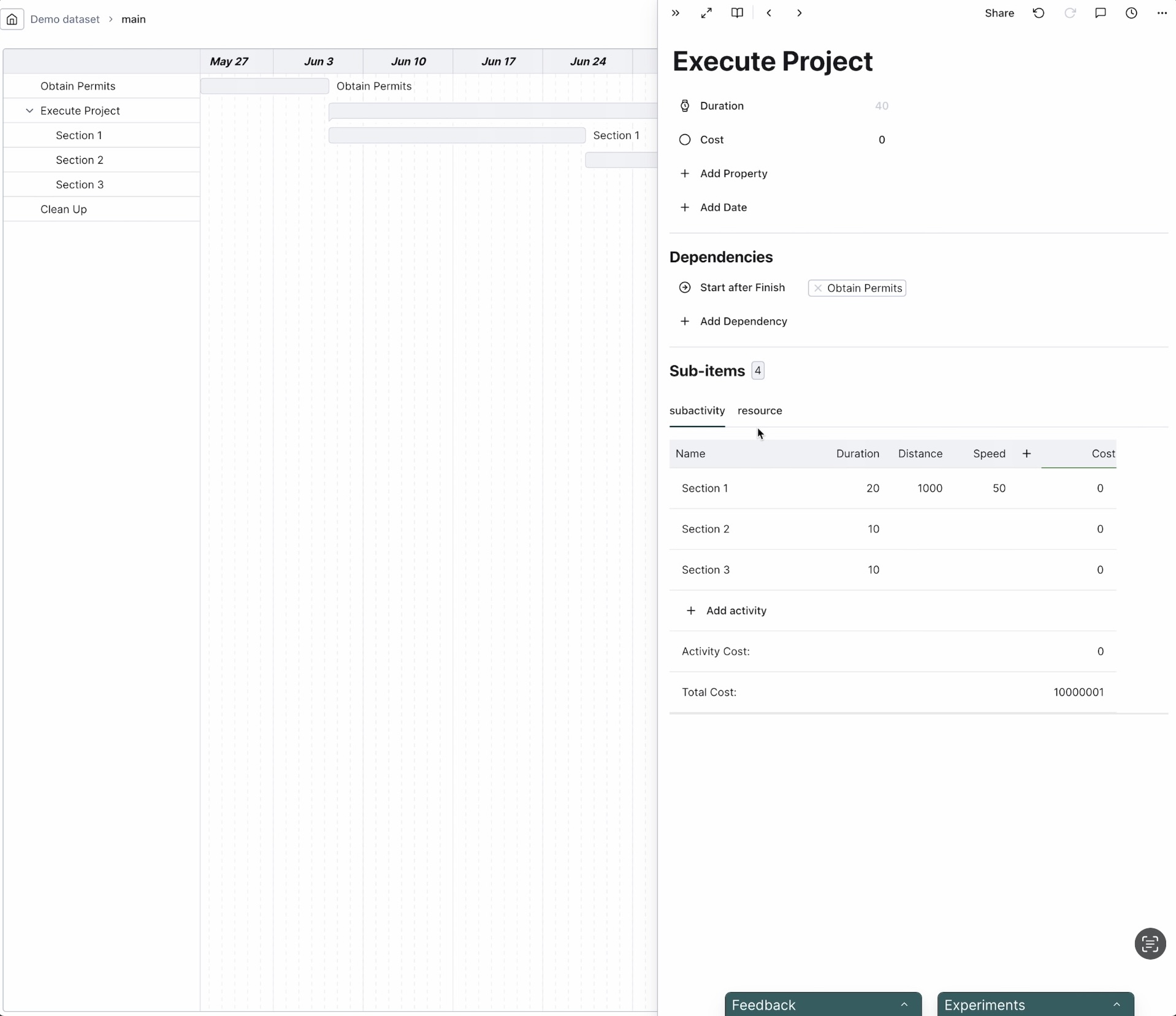 Our earliest users would recognise it. Back then, we thought each activity should have its own set of properties, to allow for maximal expressiveness. You can say "this digging activity digs X km at a unit cost of Y GBP/km, and its cost is X * Y, but that permitting activity's cost is determined by number of permits necessary".